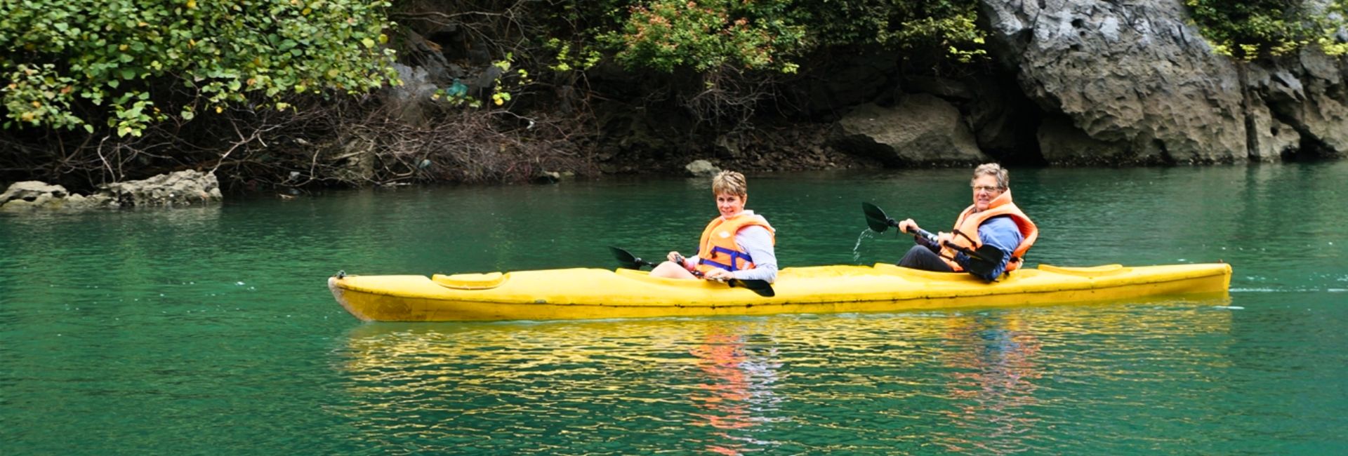 Kayaking is a popular way to explore Dark and Bright Cave. Many cruises provide kayaks and safety gear, along with a guide to help you navigate.