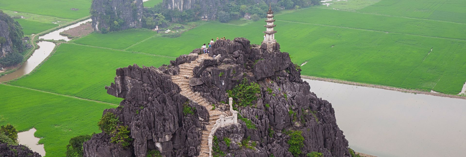 The viewpoint at Mua Cave sits atop Ngoa Long Mountain, reaching a height of about 142 meters (465 feet) above sea level. While this might not sound particularly high, it’s enough to provide sweeping views over the flat delta landscape of Ninh Binh.